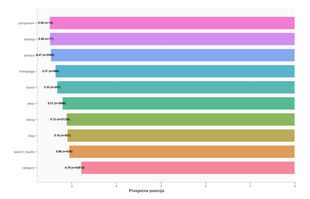 U svakom slučaju, grupirao sam stranice po njihovom tipu i fokusirao se na prosječnu poziciju tih tipova stranica.