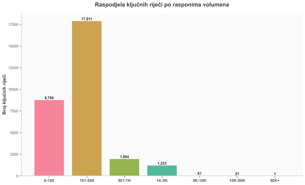Raspodjela analiziranih ključnih riječi prema rasponima volumena